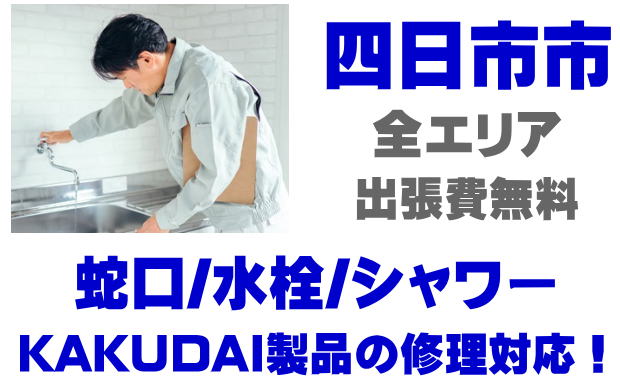 四日市市で水栓メーカーKAKUDAIの修理業者をお探しなら当社までお気軽にお問い合わせください。蛇口の水漏れ、シャワーの故障などカクダイ製に関するトラブルなら何でもご相談ください。